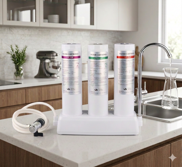 Sin duda con el purificador Top 3 y su potente sistema de filtración de 3 etapas independientes con Ultrafiltración (UF), podrás disfrutar de la mejor calidad de agua a un costo reducido. Combinación de filtros perfecta: sedimento de PP + carbón en bloque + UF ultrafiltración.